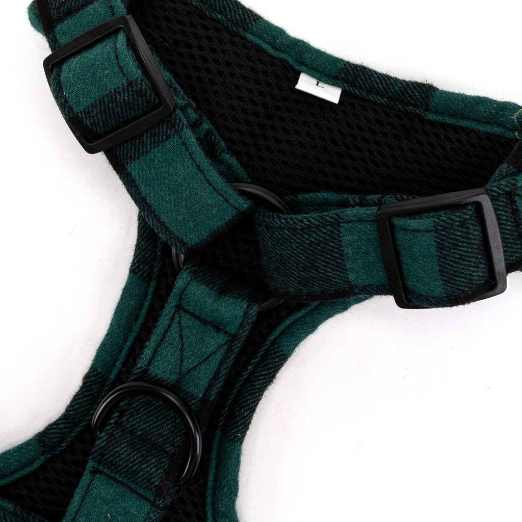 Dog Harness Plaid Green