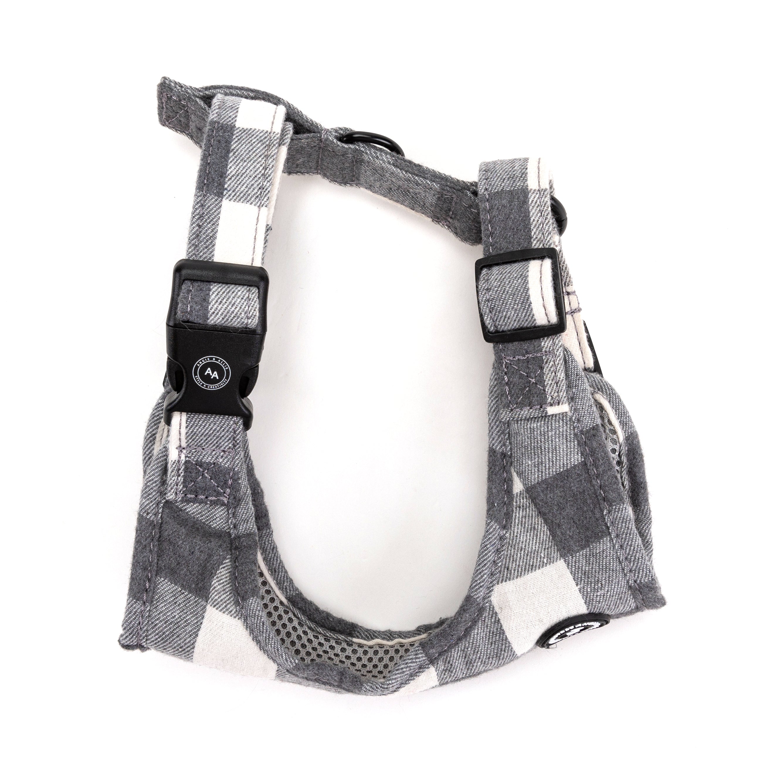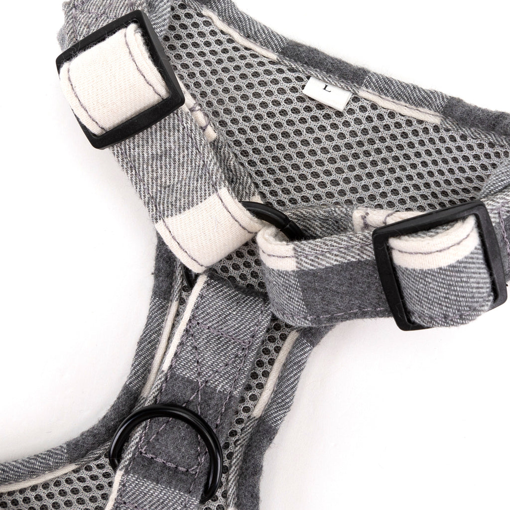 Dog Harness Plaid Grey