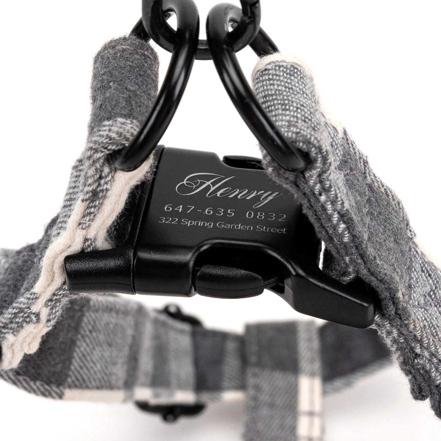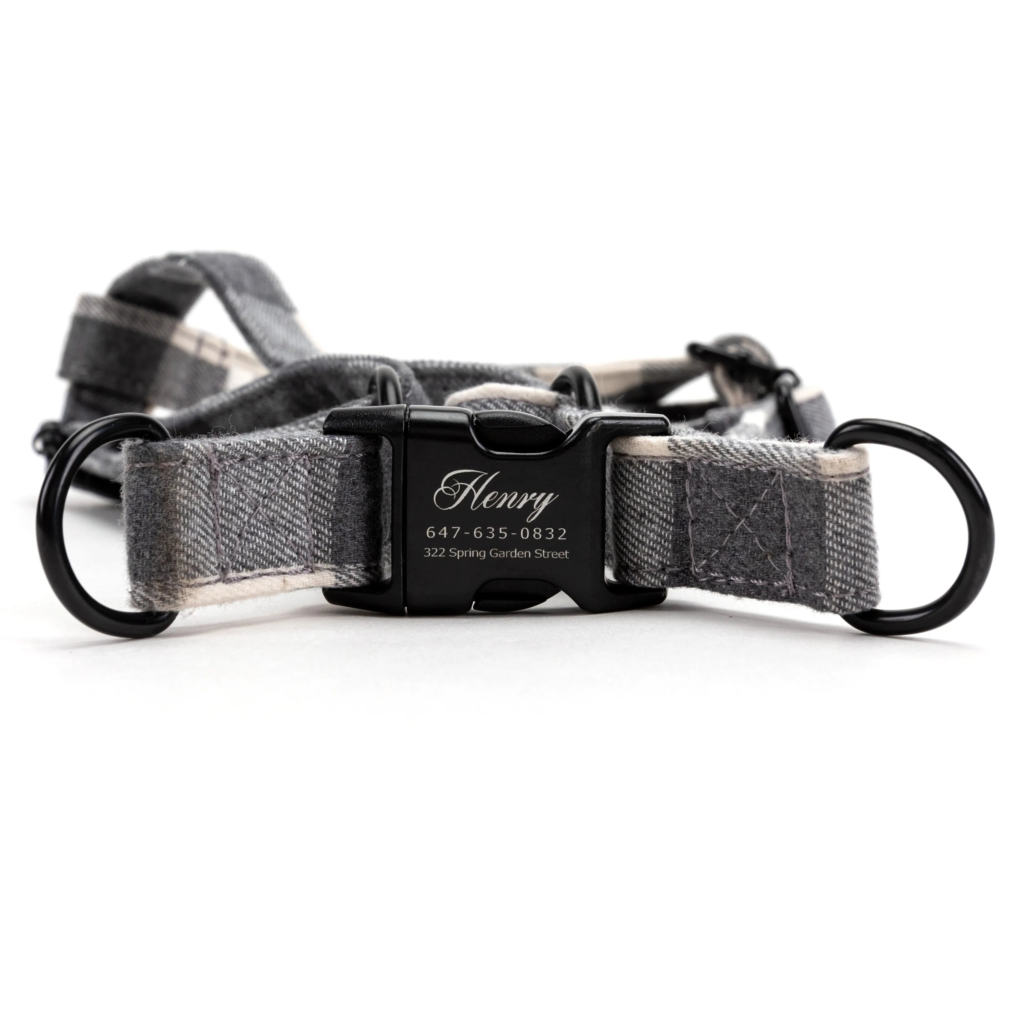 Step-In Dog Harness Plaid Grey