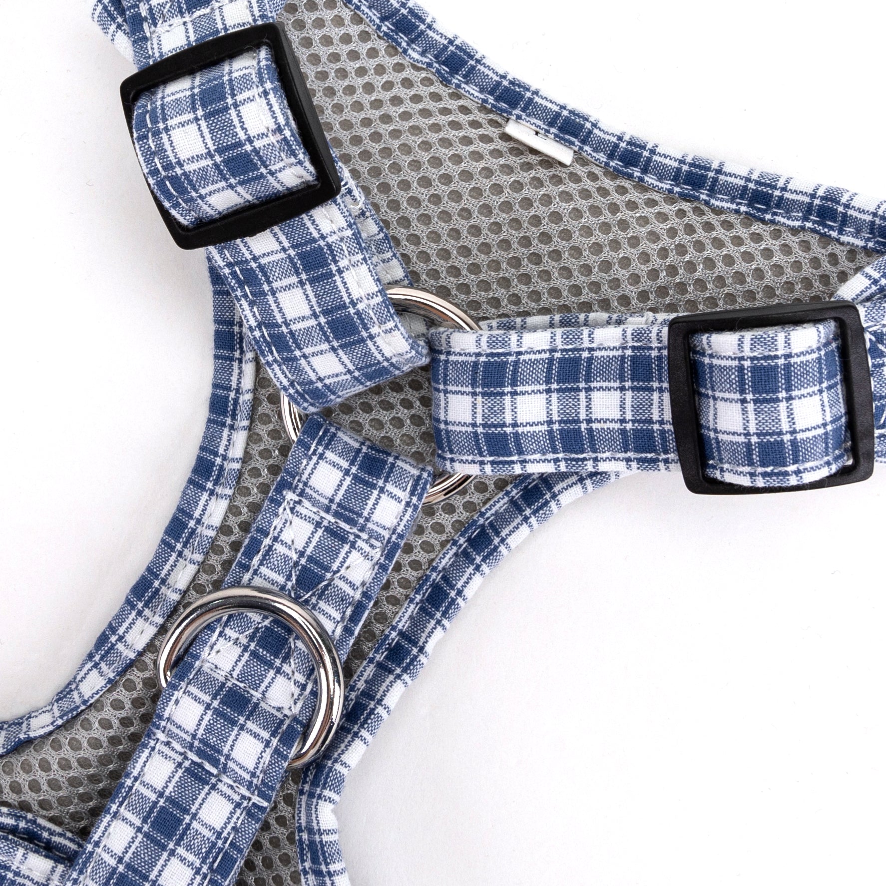Dog Harness Gingham Blue